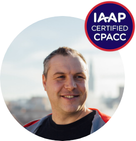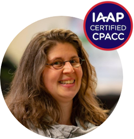 Het label 'IAAP certified CPACC' wil zeggen dat die persoon gecertificeerd is als Certified Professionals in Accessibility Core Competencies (CPACC) door the International Association of Accessibility Professionals (IAAP).